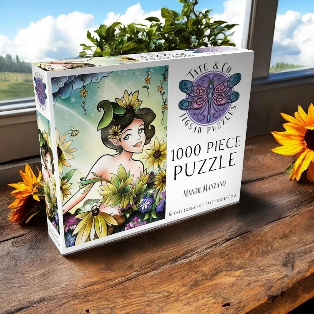 “Like colored glass filtering sunlight, Mandie Manzano’s pieces are suited for a monastery or distant castle. Gentle maidens and lush scenes craft fairy tales; and light is her medium. Soft yet luminous rays break through, colors gradate, and warmth spreads. Each work is a vivid patchwork of colors, bold lines, and patterned swirles, reminding us our brilliance fully shows when our light shines through.”