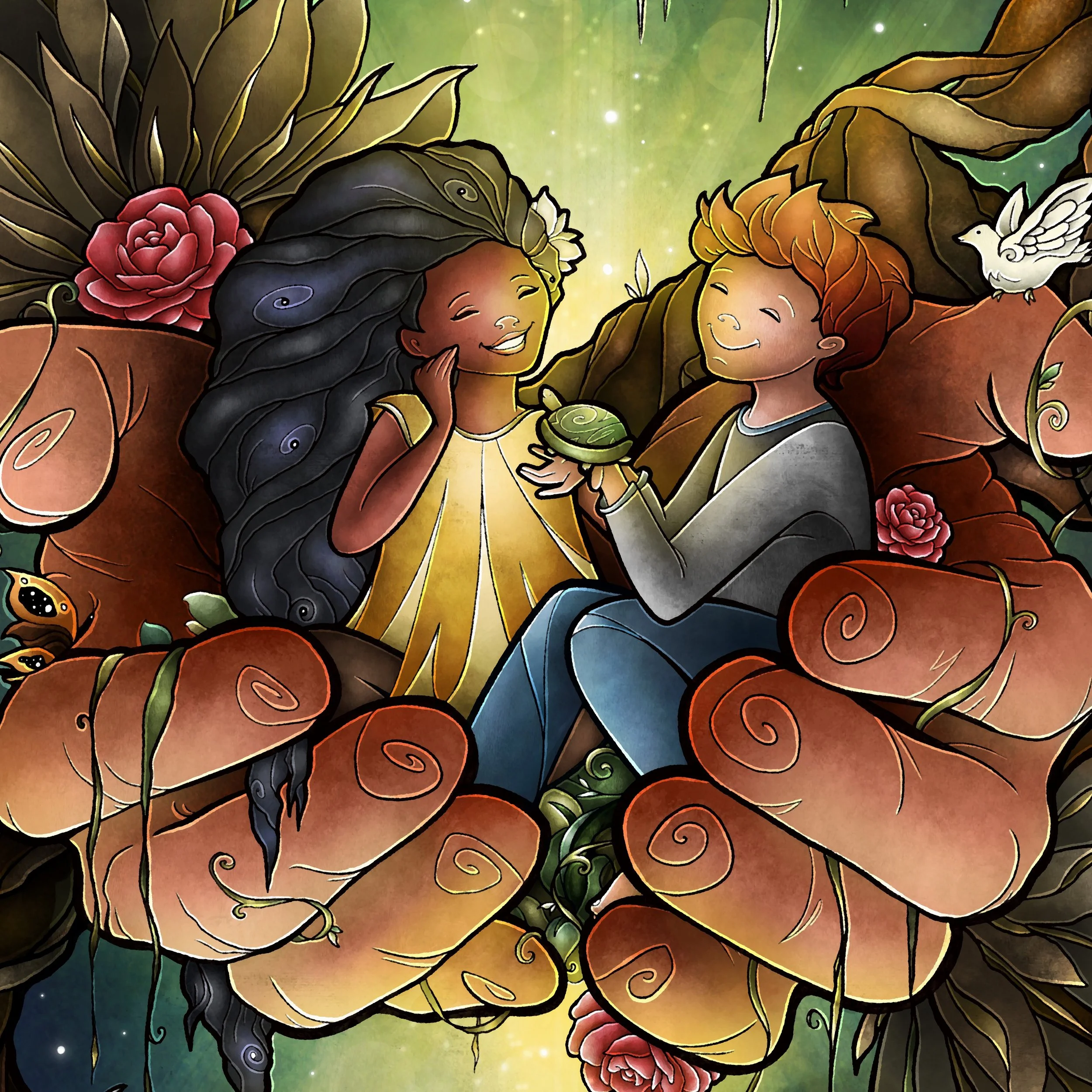 This painting reminds us of the song "He’s Got the Whole World in His Hands" and encourages us to be like children—kind, curious, and full of wonder. It asks us to love and care for the world and each other, just as He loves and cares for us.