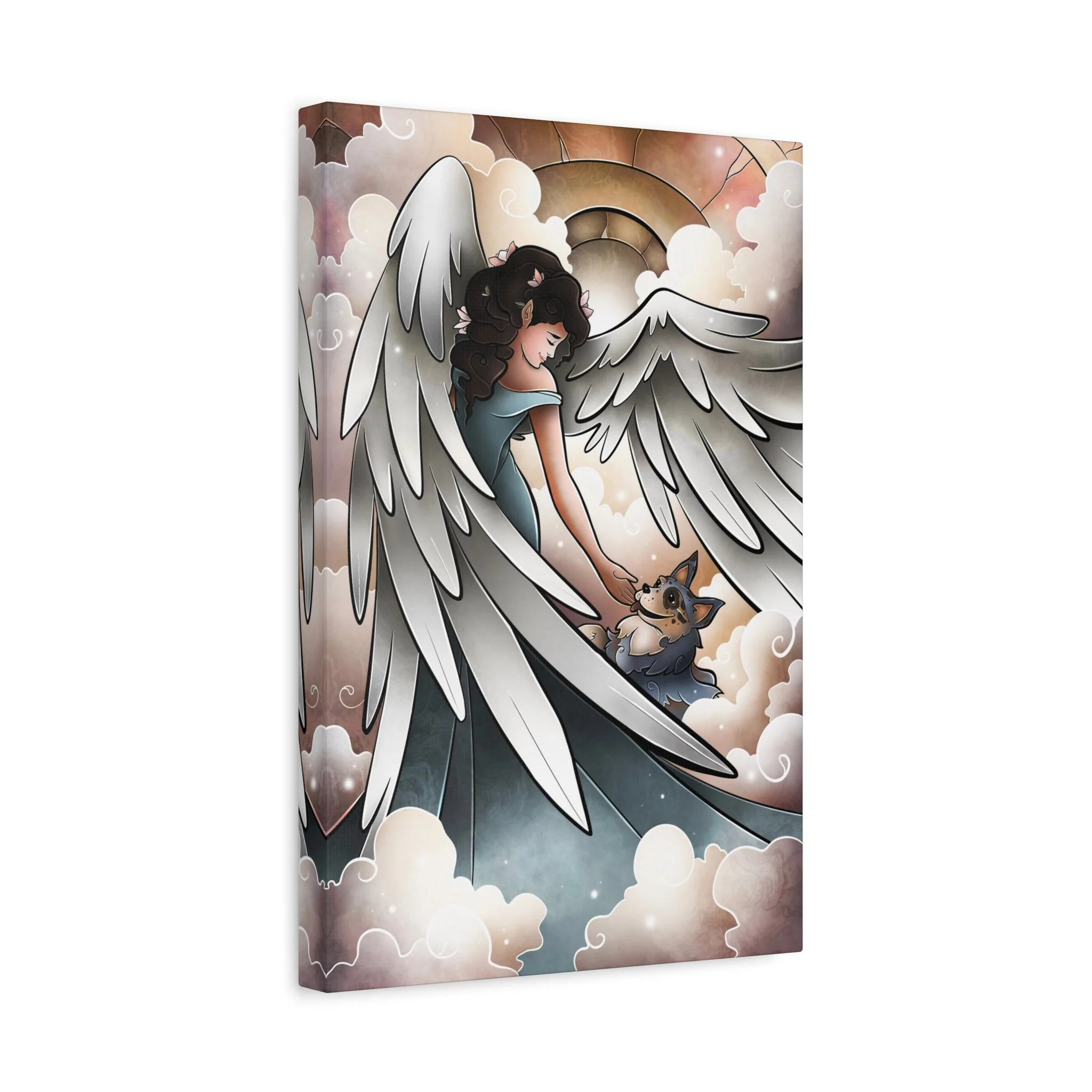 - Vibrant, single-sided high-detail print of angel and dog design