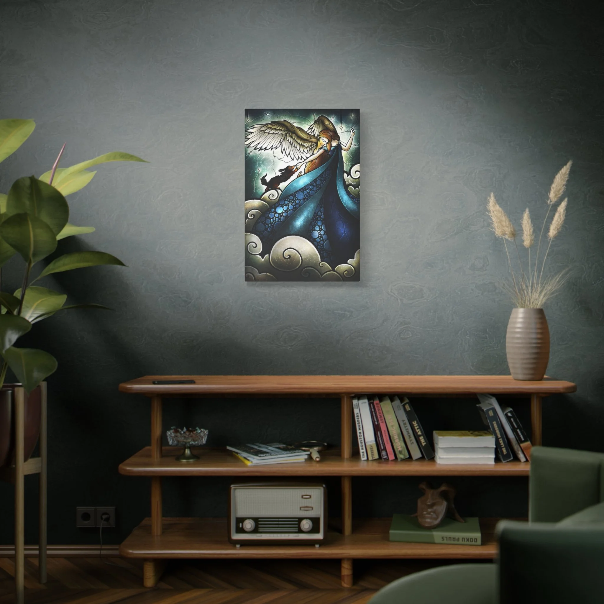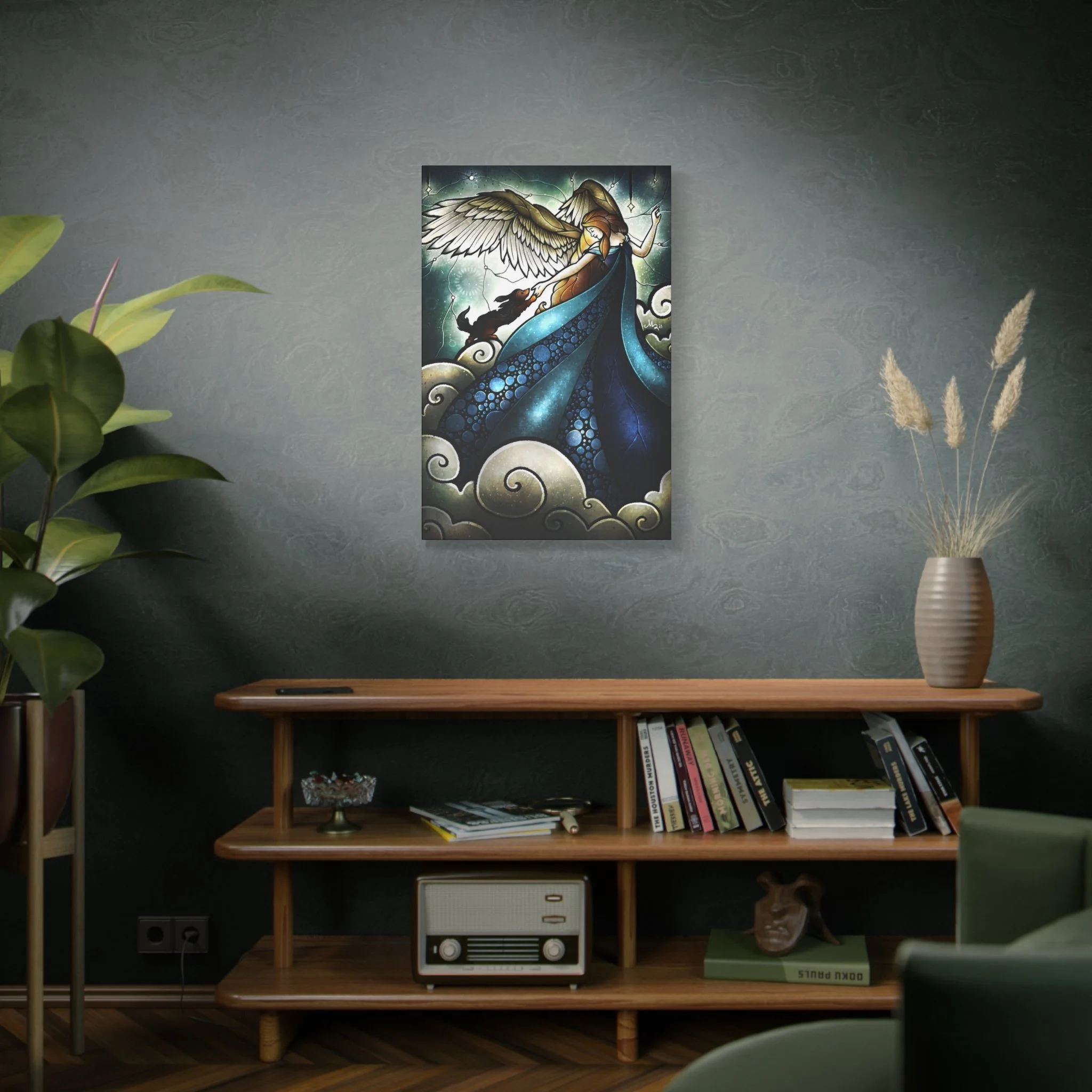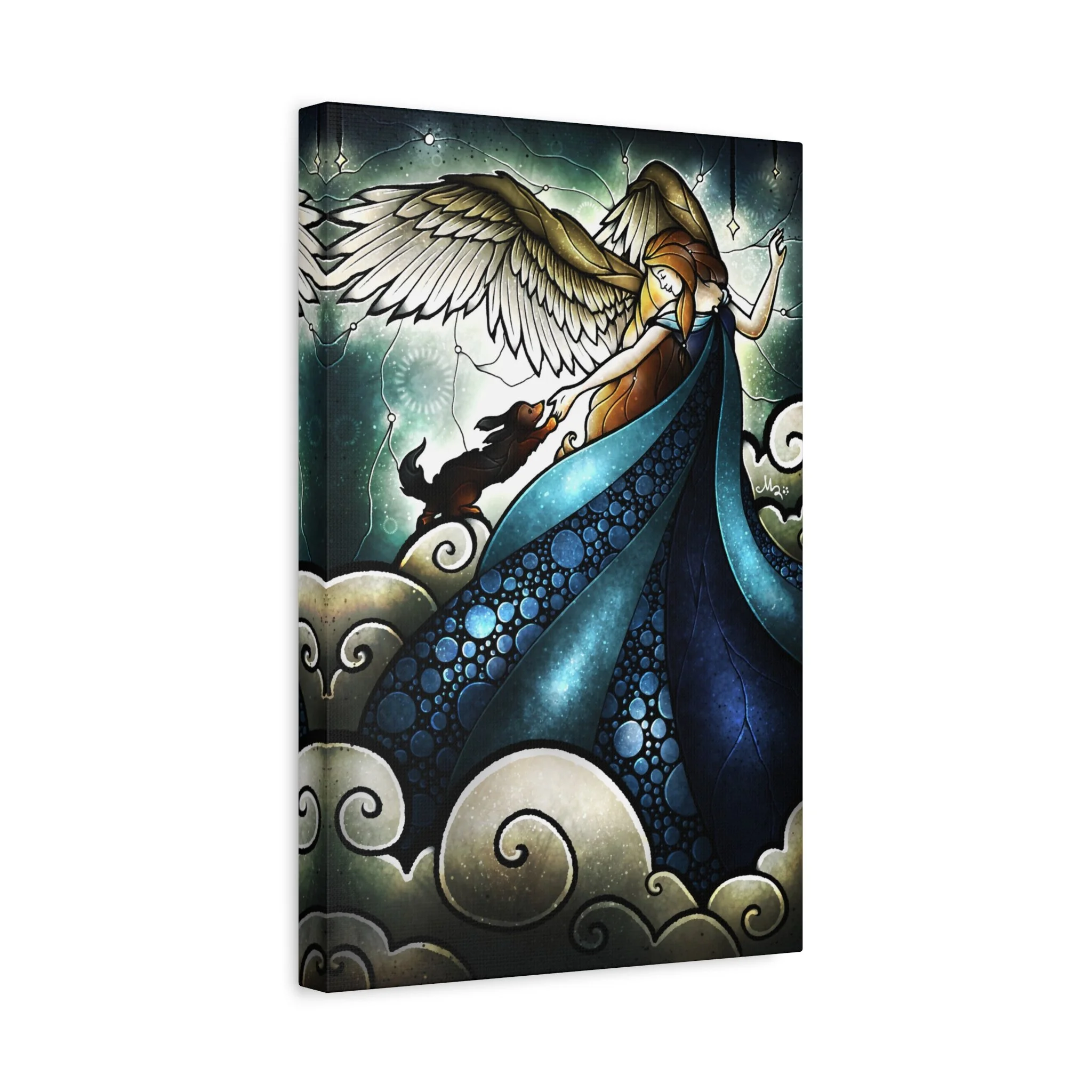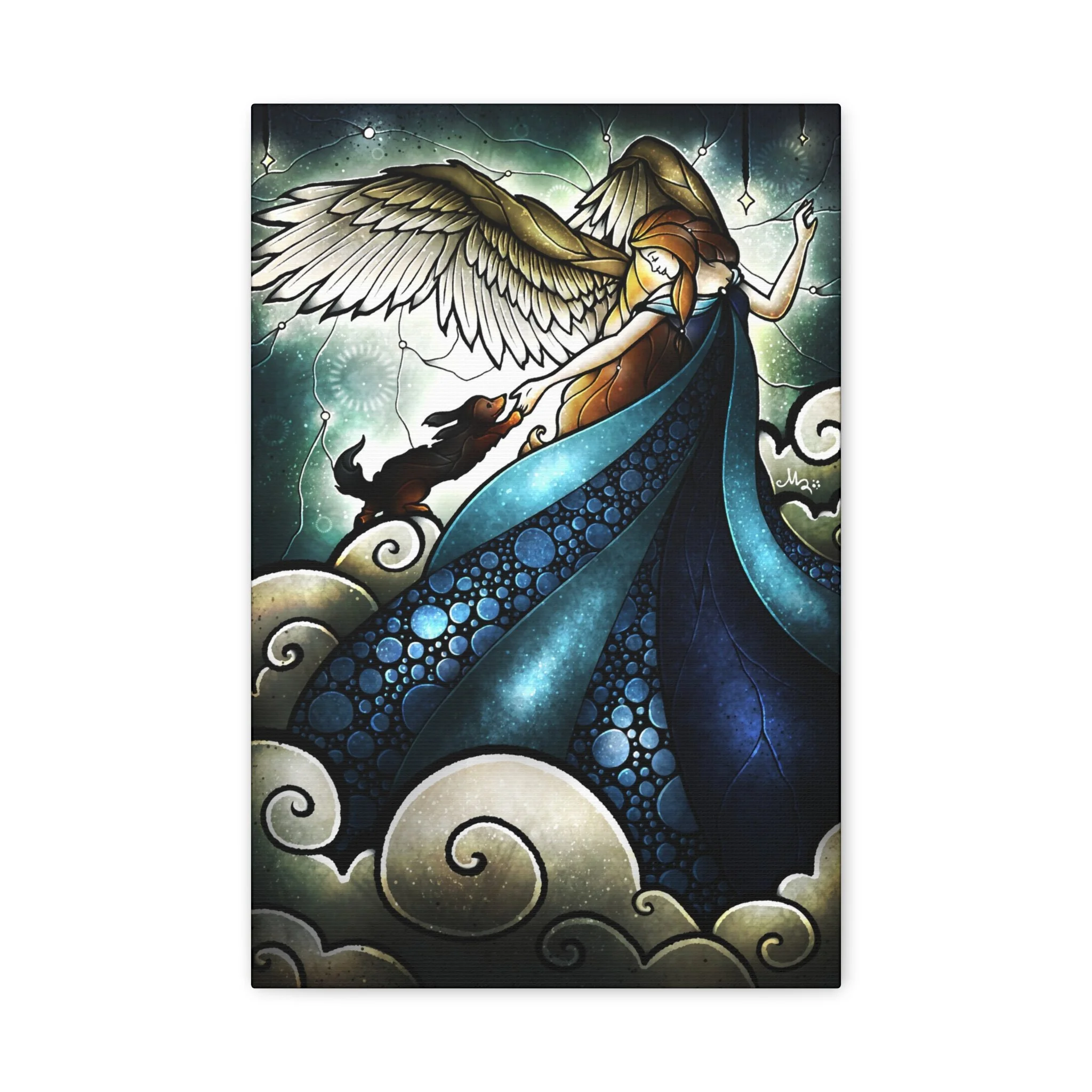 A beautiful canvas print featuring an angel welcoming a rabbit into heaven, perfect for those looking for a serene and comforting addition to their home decor. Ideal for pet lovers, those who have lost a beloved pet, or anyone seeking a peaceful and spiritual vibe in their living space or comfort rooms in clinics. Great for gifting during pet remembrance, condolences, or as a thoughtful gesture for a pet owner.