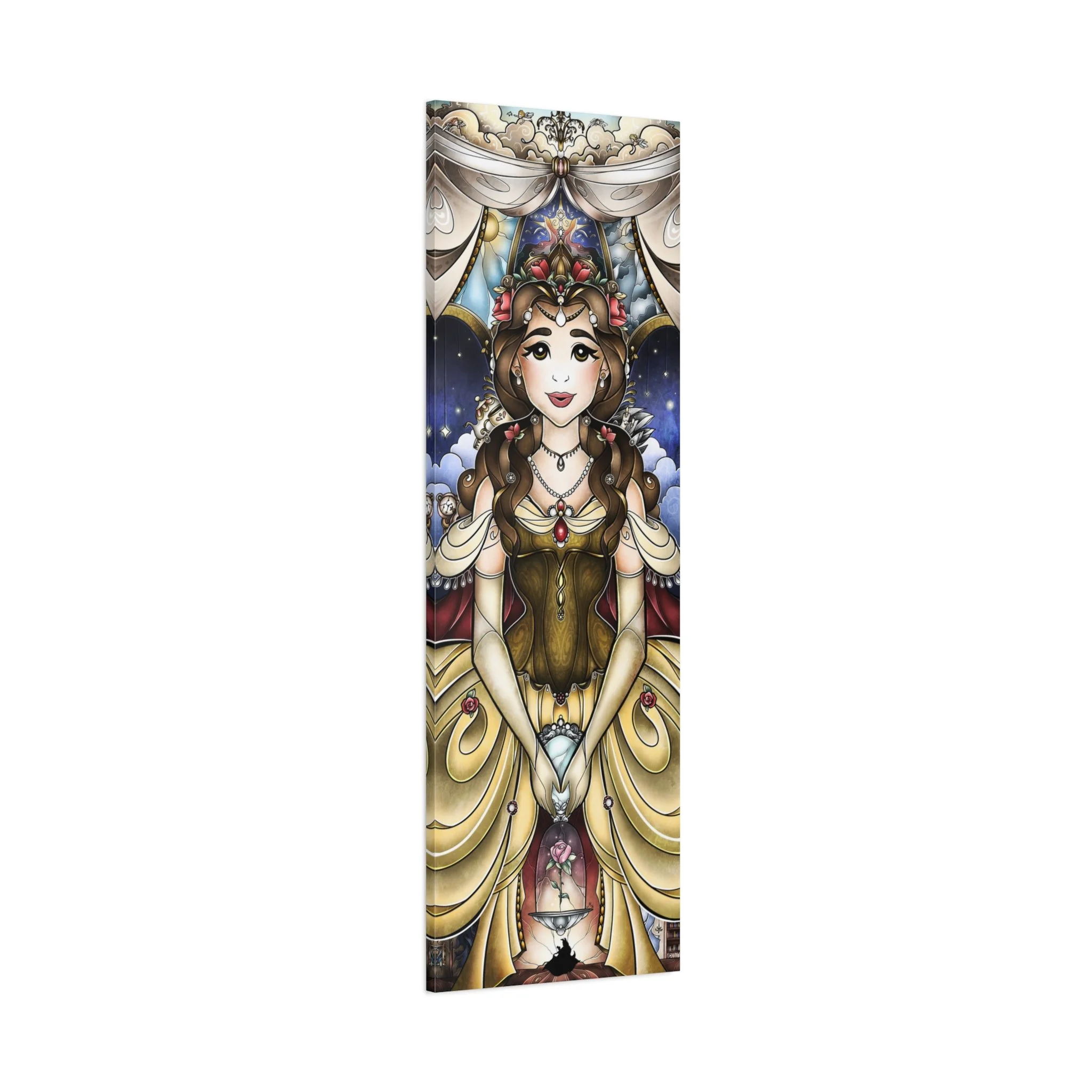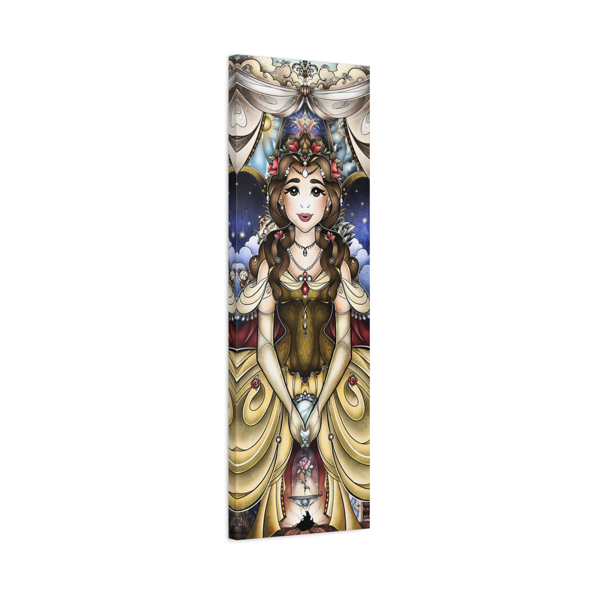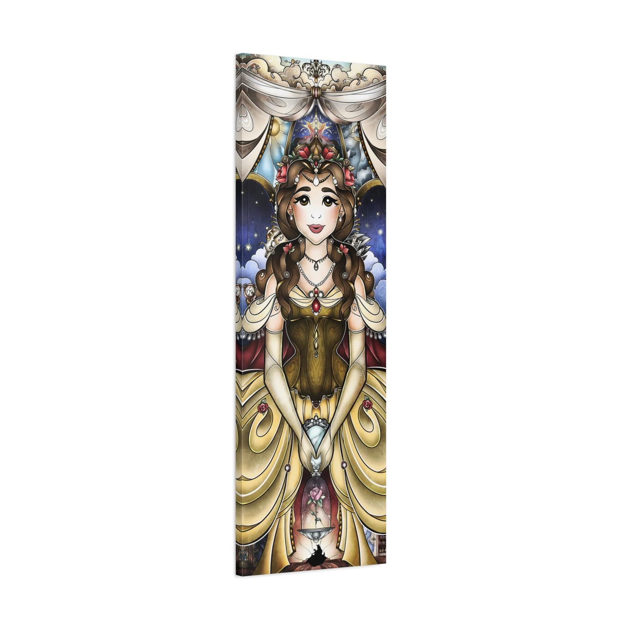 A matte stretched canvas that brings the magic of the Beauty that broke an enchanted spell to your home. The muted, museum-style matte finish keeps glare low and color true, letting the scene breathe: an enchanted rose, the cursed castle and it's prisoners, and the magic of love conquering the darkest of hearts. Lightweight yet sturdy, the stretched canvas sits confidently on the wall—its coated surface and latex inks render soft details and deep contrast while staying non-toxic. Hang it in a bedroom, hallway, or nursery to summon the echo of that fateful night when everything changed. Small rubber dots at the back keep the frame steady and level, and the included back-hanging hardware makes placement simple. For those who collect storybook moments, this canvas reads like a whisper of wonder that fits into everyday life.