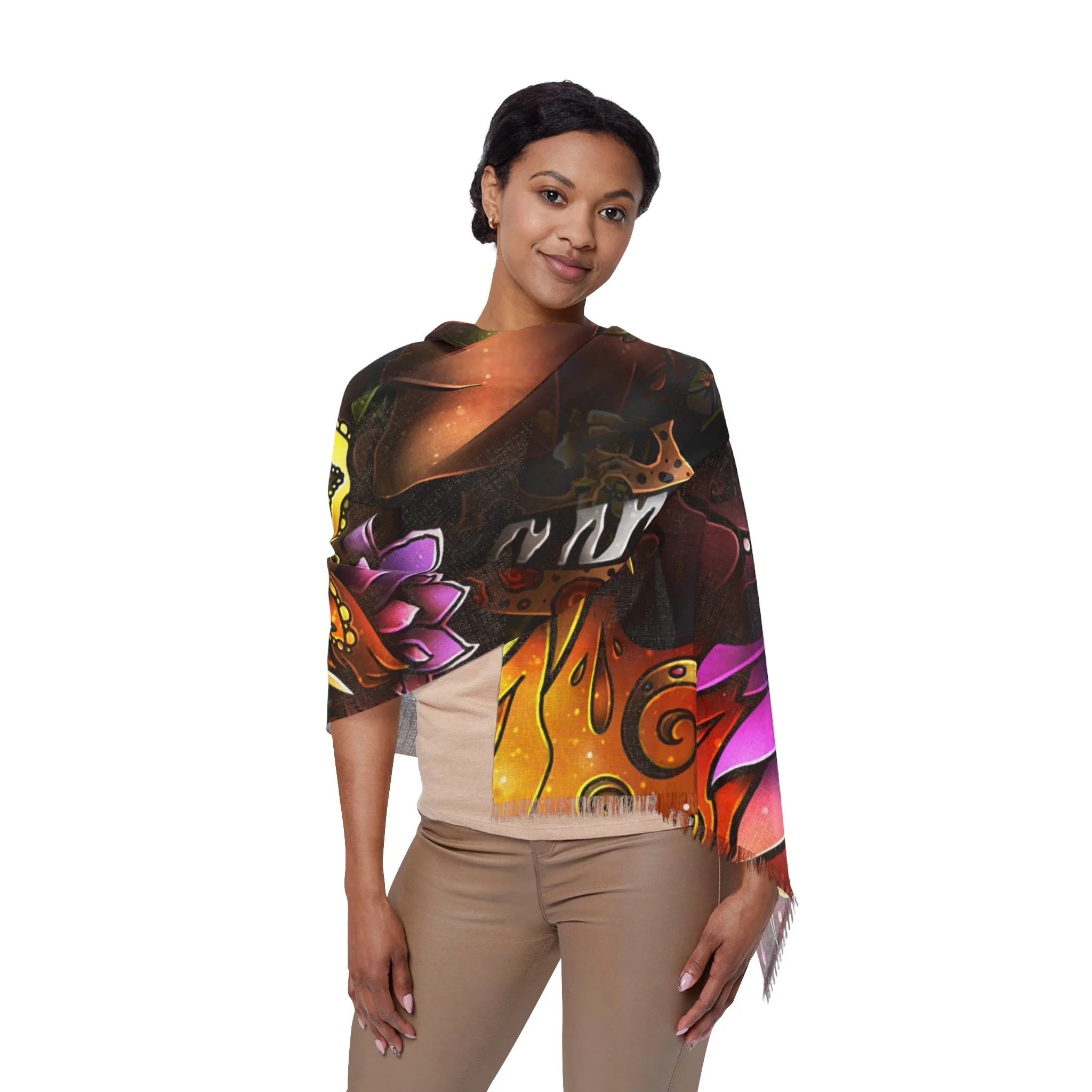 Bring the joy and color of famous New Orleans’ Zulu Parade to your everyday with this lightweight scarf. The painted King and Queen image feels celebratory and intimate—like you’ve caught a moment from the parade and wrapped it around your shoulders. The semi-translucent print gives a painterly depth, so the design reads softly when draped and pops when layered. Soft, airy fabric moves with you and dries quickly, so it works whether you’re strolling a spring market, heading to a second-line, or layering for a cool evening at a gathering. It’s a wearable memory that adds a bright, cultural note to outfits and conversations.